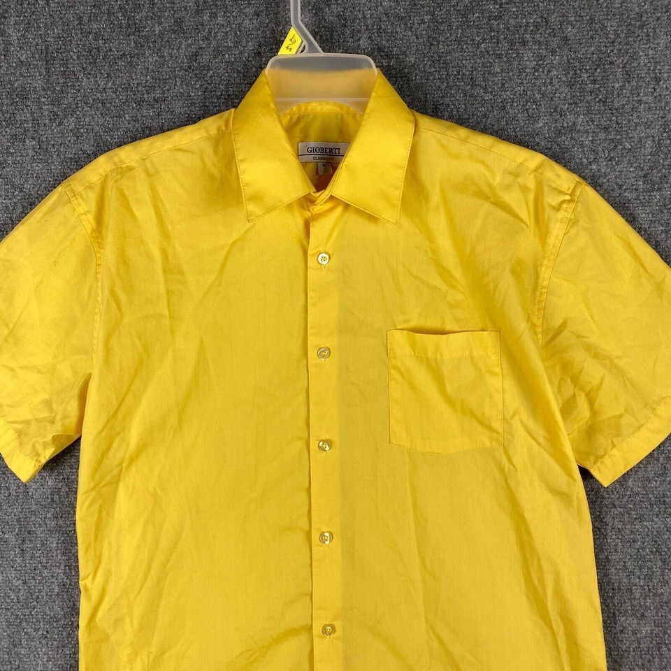 - Gioberti Button Up Shirt Men's Medium Classic Fit Short Sleeve Yellow Cotton