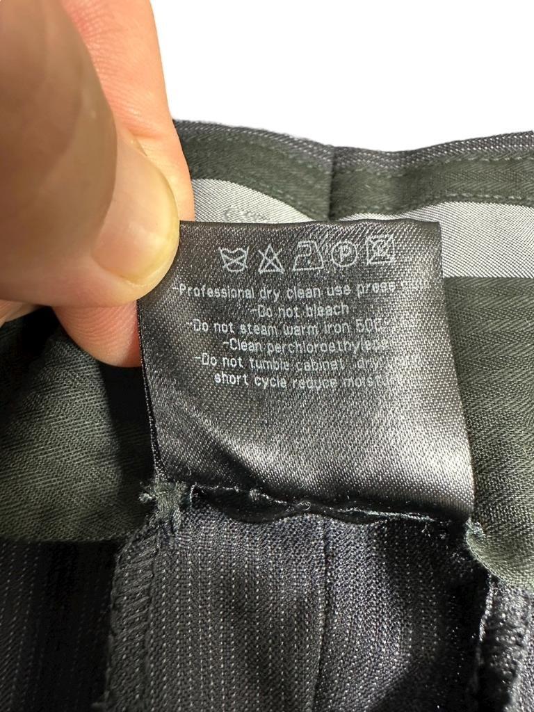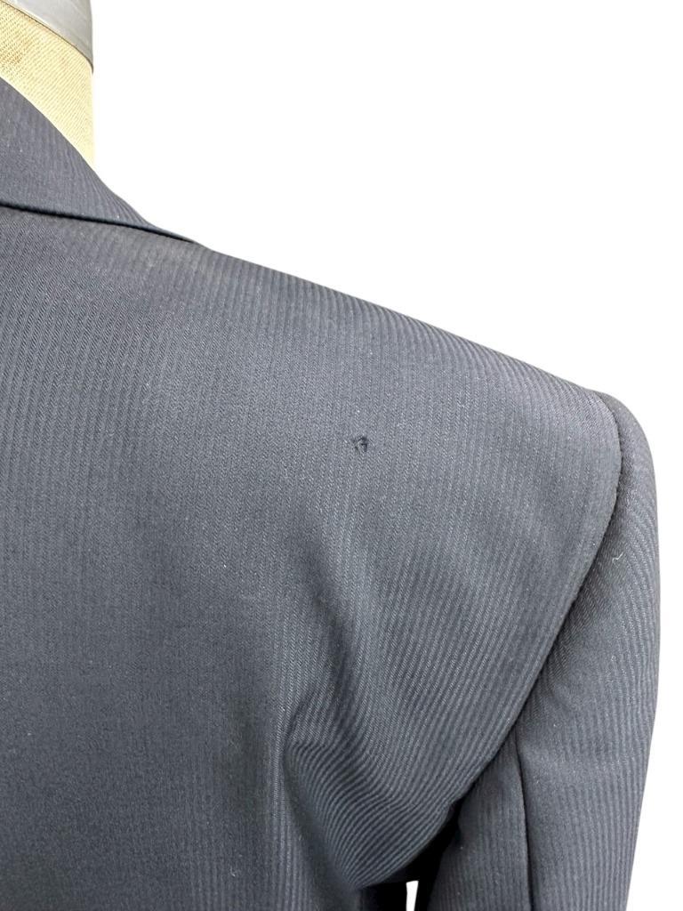Not sure if it was ever worn as the pants are not hemmed There are a few small holes that we found on the jacket