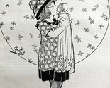 - Girl Kissing Doll Le Noel Christmas 1911 Antique Art Print French DWT14A