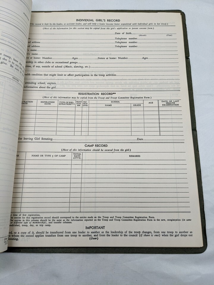 Girl Scouts DuPage County Lombard Illinois Intermediate Troop Record Book