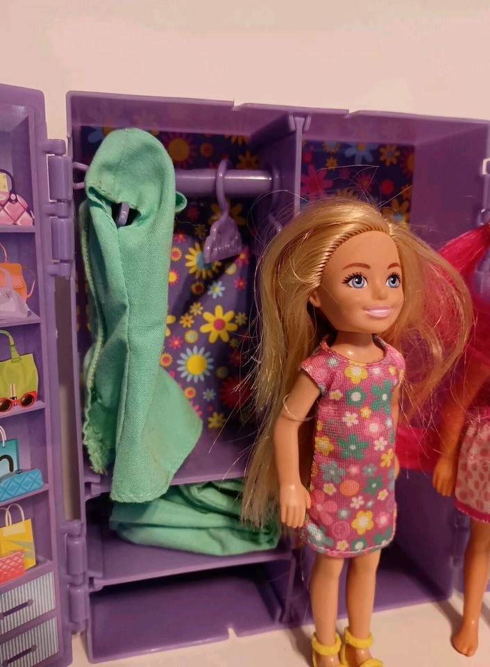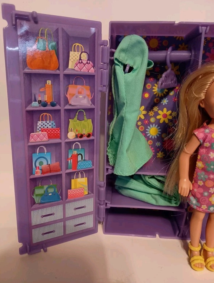- Girl's Mini Dolls Play Set Purple Wardrobe Closet Mixed Lot Of Accessories