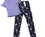 - Girls 7 Janie and Jack Purple Ruffle Sleeve Ribbed Knit Top & Floral Ponte Pants