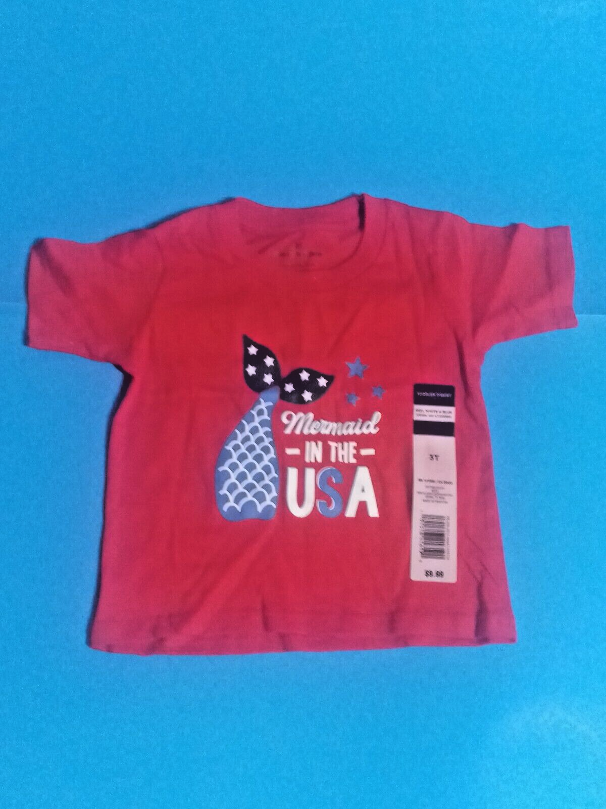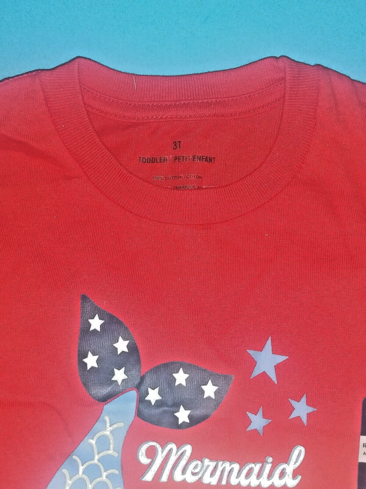 Girls Cat & Jack Mermaid In the USA t-shirt all American red toddler size 3 NEW