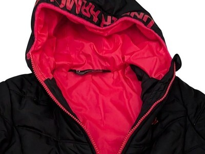 This is a beautiful girls Under armor winter coat size youth medium 10/12. Black with bright hot pink interior and lining. The Under Armour name is written across the top of the hood. Has front pockets. This coat is very warm and is in excellent condition!