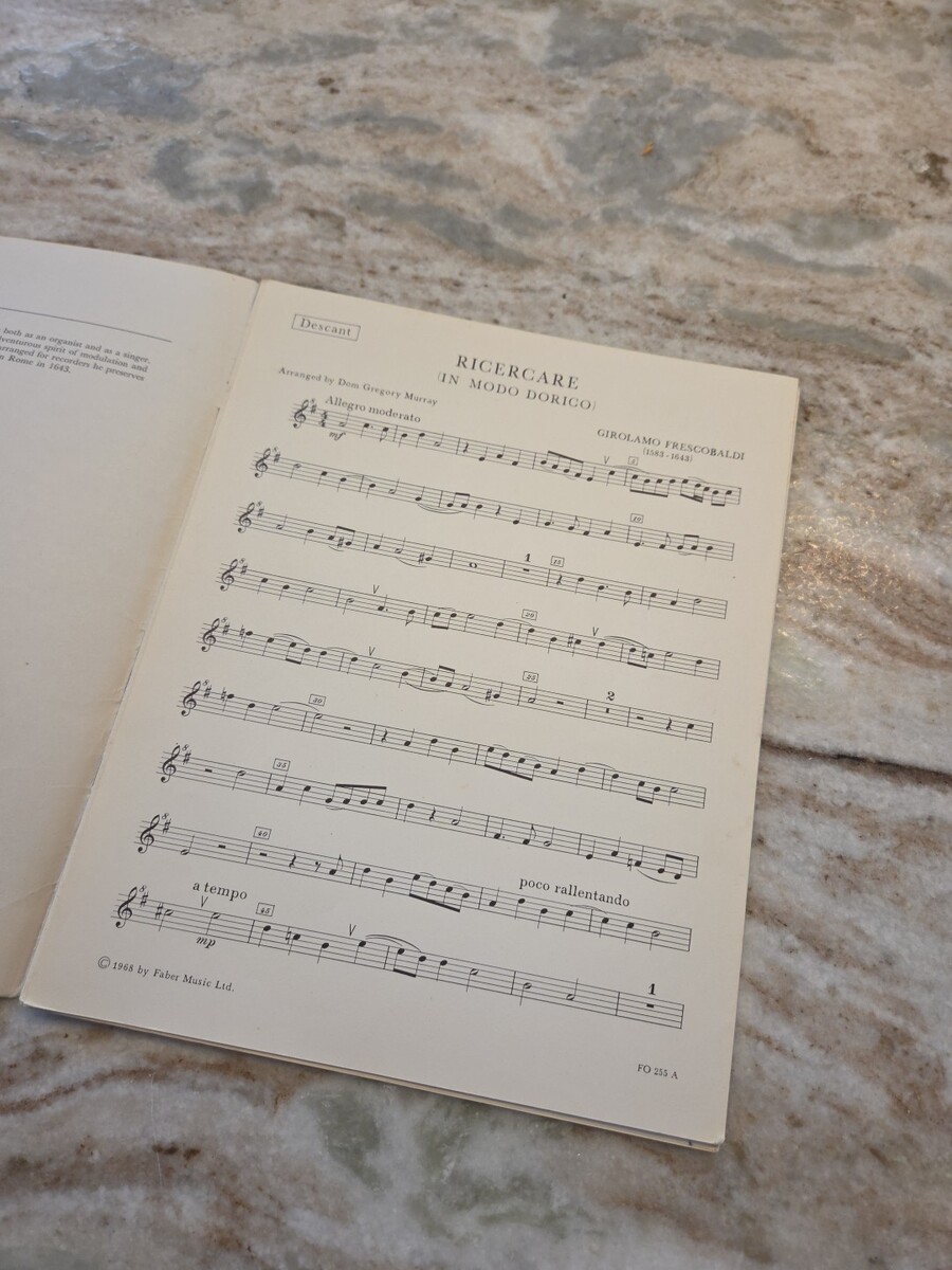 Girolamo Frescobaldi Ricercare in Modo Dorico Recorder sheet music Faber. Condition is Very Good. Shipped with USPS Media Mail.