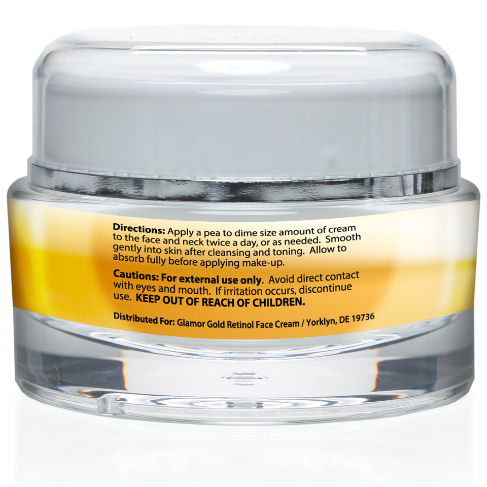 DIMINISH WRINKLES AND FINE LINES - Glamor Gold Retinol Face Cream contains powerful anti aging ingredients including Retinol. Retinol has shown to repair damaged skin and smooth the appearance of fine lines and wrinkles.
