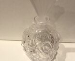 This beautiful glass rose shaped perfume bottle is a must-have for any collector of decorative glassware. Its unique design and frosted stopper make it a charming addition to any vanity or dresser. Perfect for storing your favorite perfumes or as a decorative piece, this bottle is sure to catch the eye of anyone who sees it.