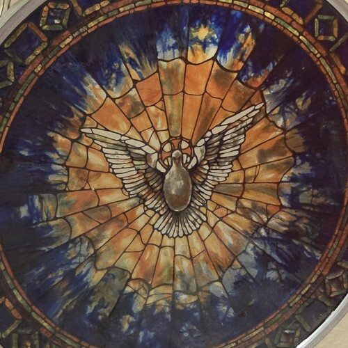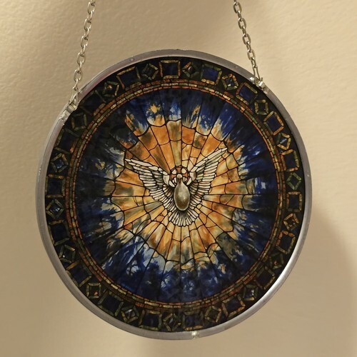 - Glassmasters The Holy Spirit Round Stained Glass With Chain Tiffany Style 6 3/8"