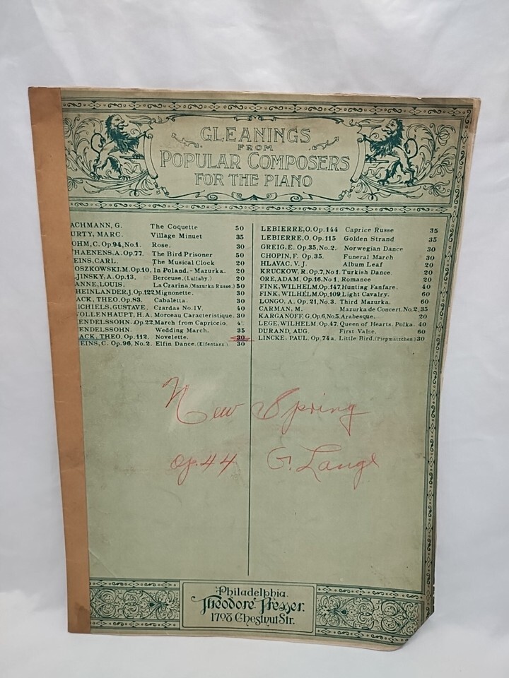 - Gleanings New Springs Philadelphia Theodore Presser Sheet Music