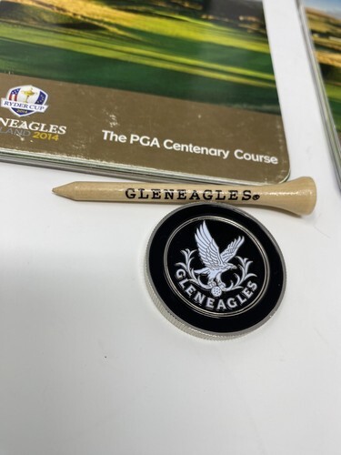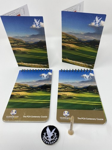 - Gleneagles Scotland 2 Yardage Books, 1 Used Scorecard, Ball Marker Chip , 1 Tee