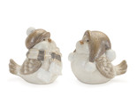 Celebrate the season with these charming Glittered Winter Bird Figurines. This set of four features two assorted designs, each adorned with a whimsical hat and scarf, making them the perfect addition to your Christmas decor. With their delicate wintry champagne and silver tones, these birds add a touch of elegance to any room. Crafted from durable Terra Cotta, these figurines are built to last and will brighten your mantle, bookshelf, or holiday displays for many seasons to come. A thoughtful gift for bird lovers, this set brings a cheerful touch to your home.