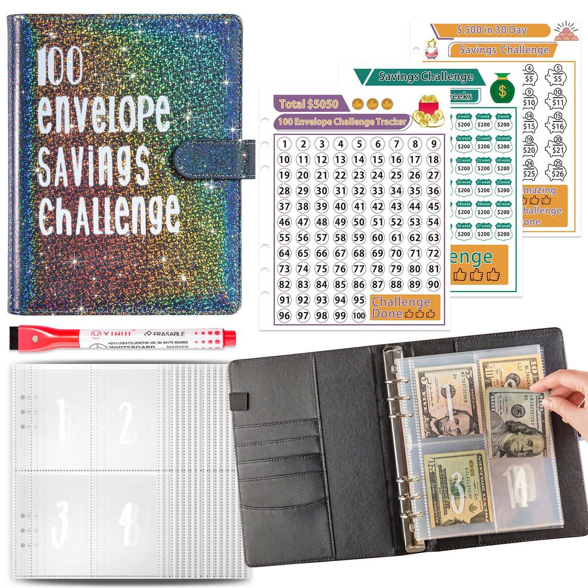 - Glittery 100 Envelope Money Saving Challenge Planner