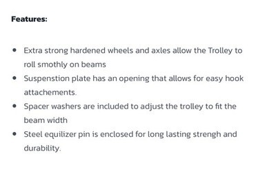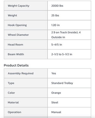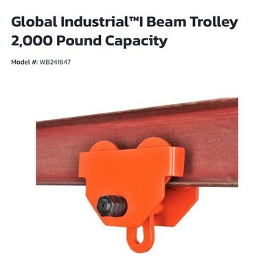 - Global Industrial 2,000 Pound 1-Ton Capacity I-Beam Hoist Trolley Model 241647