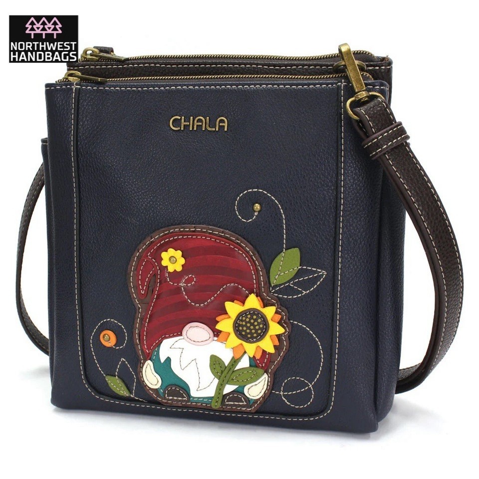 GNOME SUNFLOWER MERRY MESSENGER BAG PURSE RFID NAVY CHALA