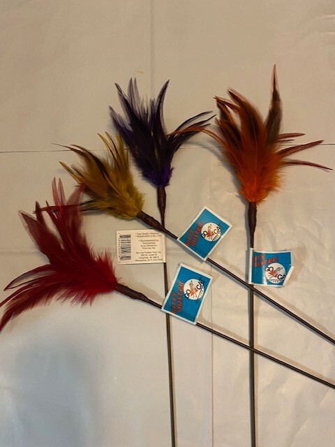DA BIRD KITTY DUSTER 18 inch Teaser an awe-inspiring Cat Toy that creates a stimulating play experience for any cat. The Kitty Duster is made with quality materials that utilizes vibrant colors to drive your cat wild.