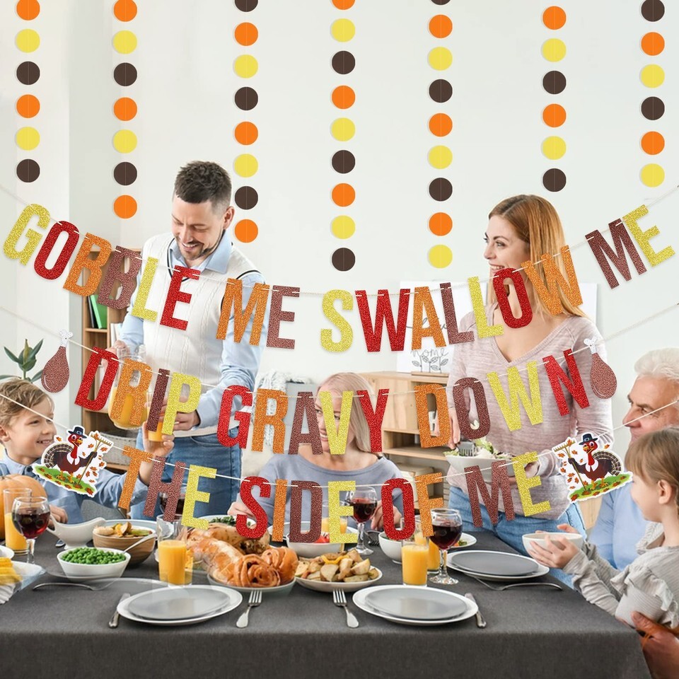 - Gobble Me Swallow Me Thanksgiving Friendsgiving Banner Decoration