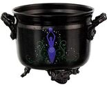 This lovely metal cauldron features three ornate legs, two matching handles and the ethereal image of a Goddess on the front. This wonderful cauldron will add flare to any room or altar, and is the perfect size for brews, incense and smudges. Approximately 4 inches tall and 4.5 inches in diameter.