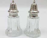 A beautiful and simple design set of salt pepper shakers. Fluted bell shaped glass with silver plated tops. They stand 3.5 inches tall and are 1-7/8 inches across at the base. No chips or cracks