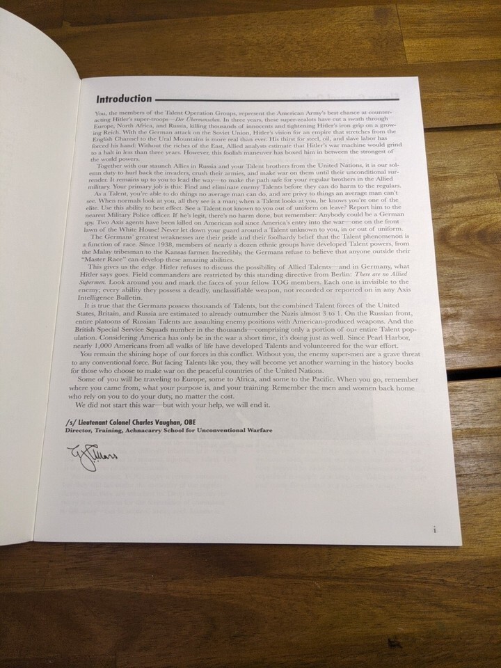 Godlike Talent Operations Command Intelligence Bulletin No 2 RPG Book