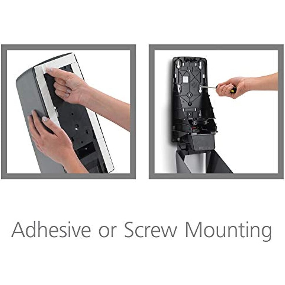 Features large display window to show soap inside. One-hand push operation. Made of high-impact ABS plastic with black-textured finish. Dispenser Type: For Liquids; Capacity (Volume): 2000 mL; Color(s): Gray; Material(s): ABS Plastic.