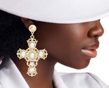 You deserve more than ordinary, and we know you'll be drawn to the elegance of these gold-toned drop earrings. The intricate, handcrafted details on each piece create a unique statement piece, while the delicate cross design adds an understated touch of religious symbolism that speaks for itself. These aren't just about looking good; they're about feeling confident and embodying your own inner radiance.