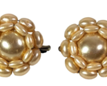 - Gold Beaded Flower Brooch Pair 1-in Wide Retro Collectible Vintage 1950s Gift