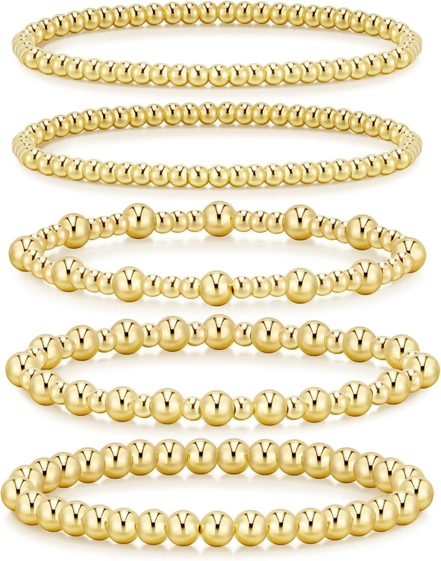 - Gold Bracelets for Women Waterproof, 14K Gold Plated Beaded Strand Bead Ball Bra