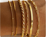 ? ?6Pcs GOLD BRACELETS SET?:Set contains: ?Satellite Bracelets ?Figaro Bracelets ?Box Chain Bracelets ?Paperclip Bracelets ?Satellite Bracelets ?Rope Bracelets. These Bracelets are suitable for layering as well as being worn alone.