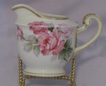 DESCRIPTION: This is a hand-painted white creamer with gold trim. It has pink roses. It was made in occupied Japan.