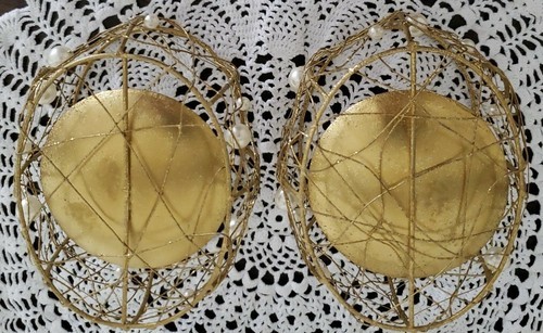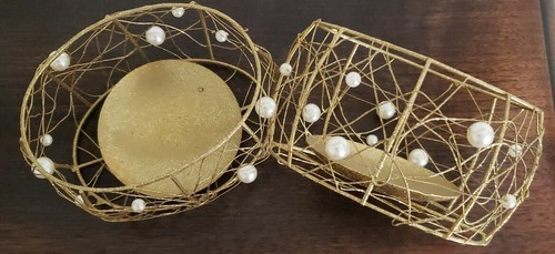 Gold Filagree & Pearl ~ Tea Light/Votive Candleholders ~ 4.25" x 3" x 2.5" Tall