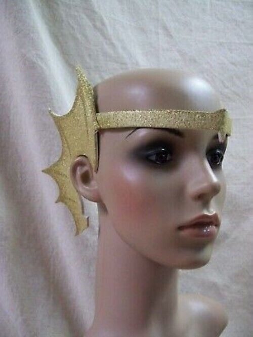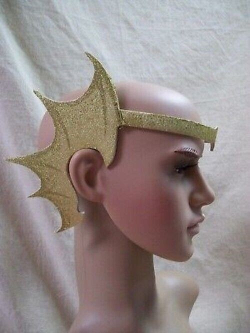 Gold Glittery Mermaid Webbed Fin Ears Earpiece Aquatic Creature Sea Horse Dragon