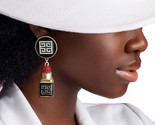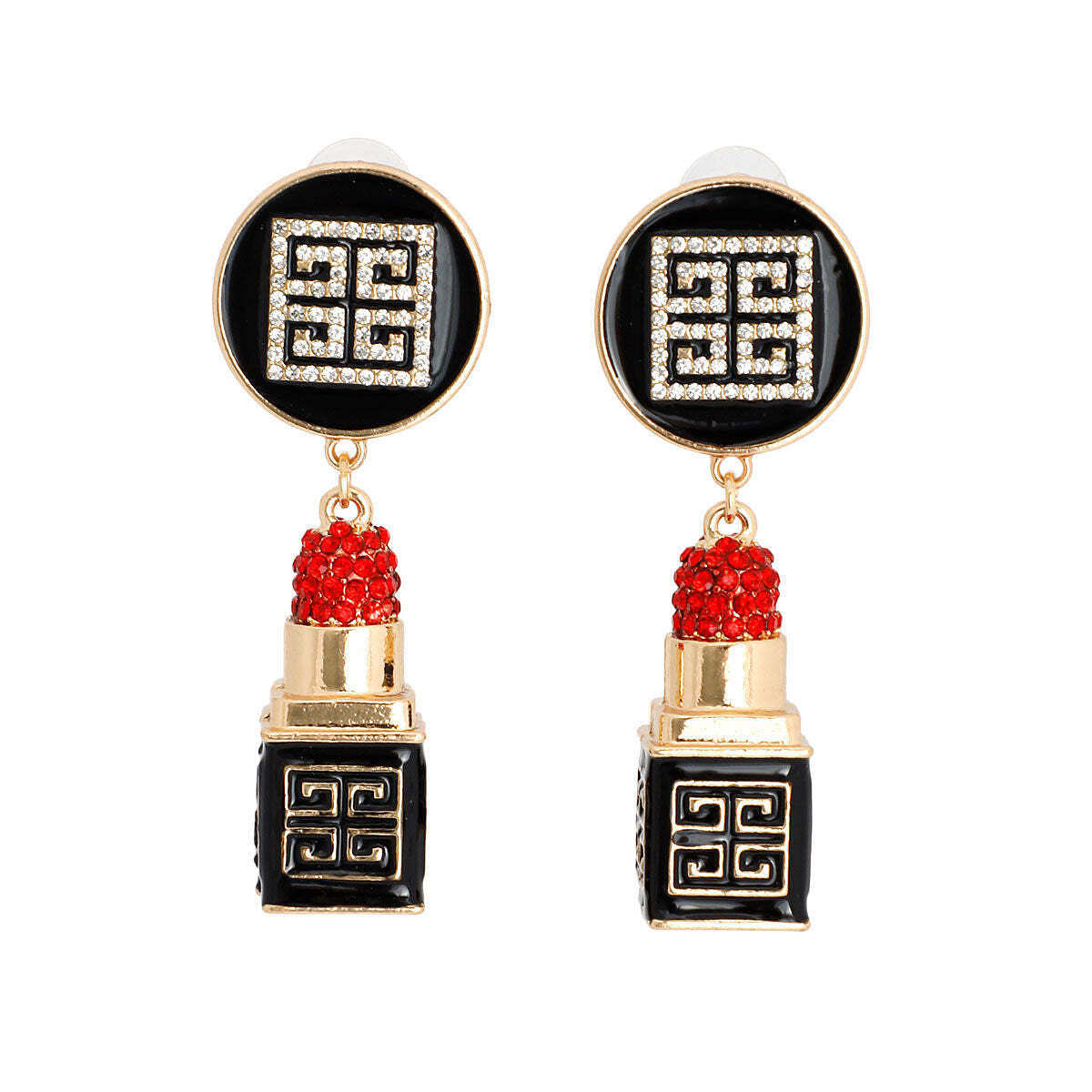 - Gold Greek Key 3D Lipstick Charm Earrings