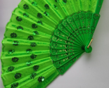 - Gold & Green Large Lace Floral Folding Hand Held Plastic Chinese Fan