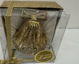 The product is a new 2.5? gold lace metal bell ornament, designed with a beautiful lace pattern and featuring a metallic gold color. This ornament is perfect for adding a touch of elegance to your holiday or seasonal decor. The set includes one ornament, making it a unique and charming addition to any collection. Made of metal, this bell ornament is durable and long-lasting, adding a festive and decorative touch to your home during the holidays.