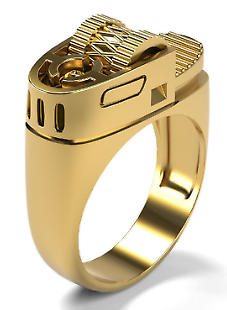 - GOLD LIGHTER SHAPED METAL BIKER RING BRX068 smoke mens jewelry flame novelty