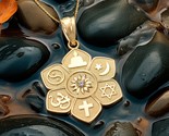 - Gold Lotus Interfaith Diamond Pendant Spiritual Unity Charm Necklace 10K/14K