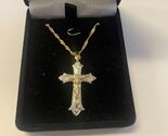 - Gold & Silver 1.75" Crucifix, Brazilian Gold Plated 20" Necklace, New, Gftshp-15