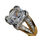 - Gold Tone Princess Cut Womens Ring Size 8 Jewelry Round CZ Cocktail Ring