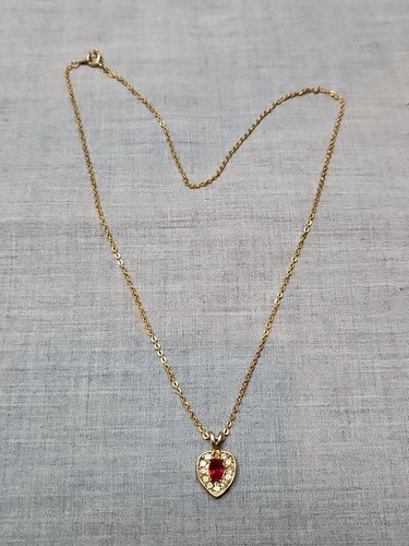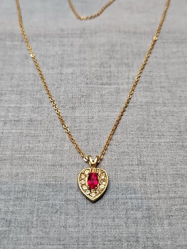 - Gold Tone Ruby Costume Jewelry Heart Necklace, 19'' Length Vintage