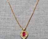 Gold Tone Ruby Costume Jewelry Heart Necklace, 19'' Length Vintage