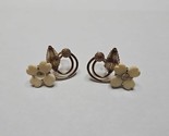 Gold-Tone White Swirl Flower Clip On Earrings Vintage