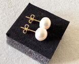 - Gold pearl earrings 14k gold natural pearls studs earrings stone queen