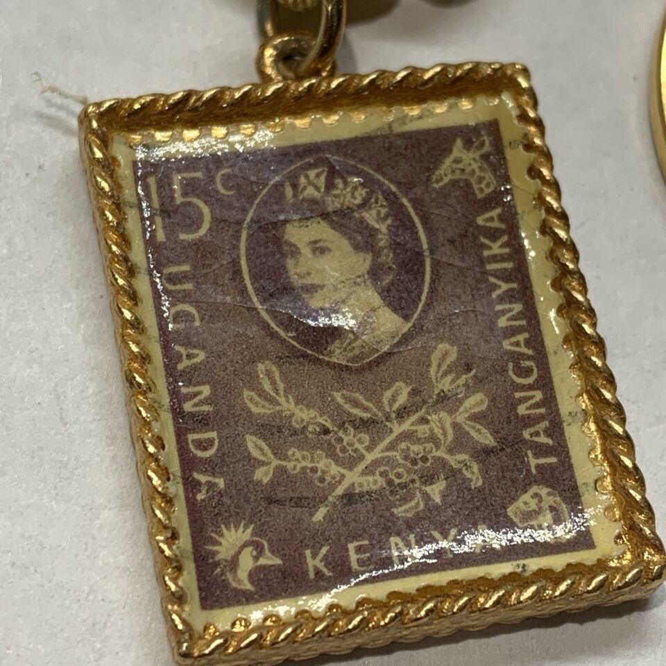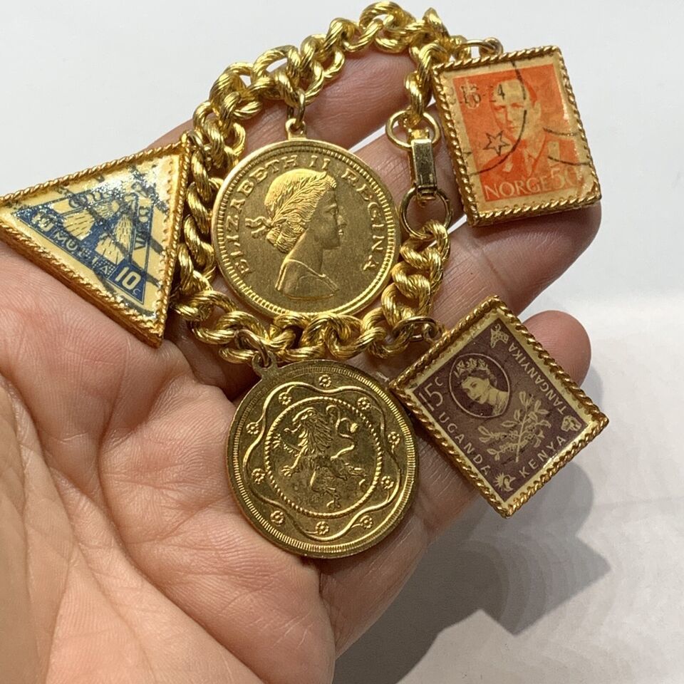 - Gold tone quality faux coins and stamps charms bracelets 7”