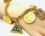 Gold tone quality faux coins and stamps charms bracelets 7”