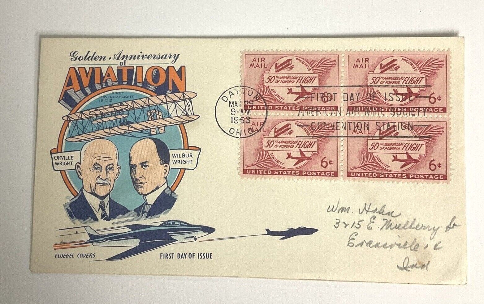 Golden Anniversary of Aviation Fluegel Mail Cover First Day of Issue 1953 Dayton, Ohio