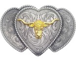 - Golden Longhorn Bull Heart-Shaped Design Silver Metal Women's Belt Buckle