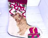 Golden Small Golden Dog Christmas Stocking Needle Point Green Velvet