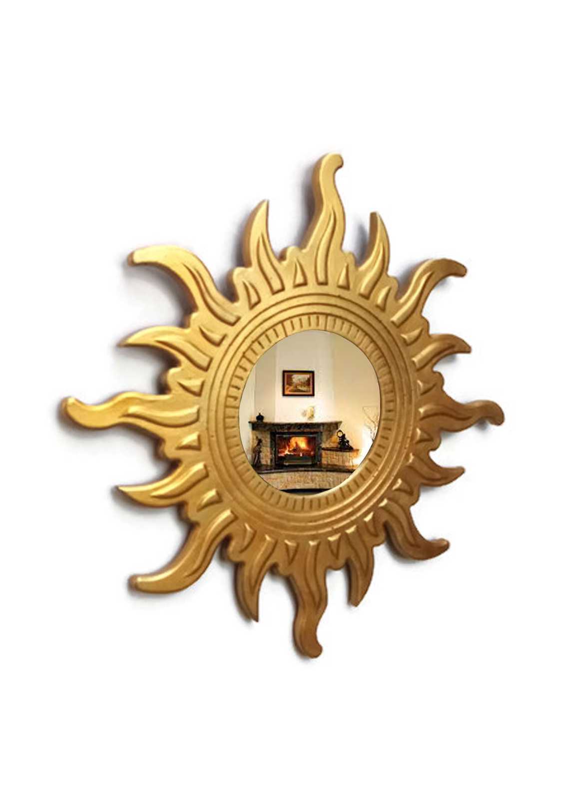 Golden Sunburst Resin Wall Mirror: Art Deco Style, Handmade