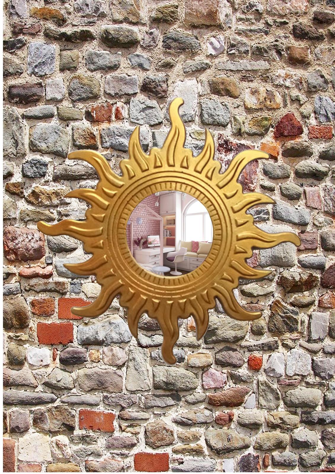 - Golden Sunburst Resin Wall Mirror: Art Deco Style, Handmade