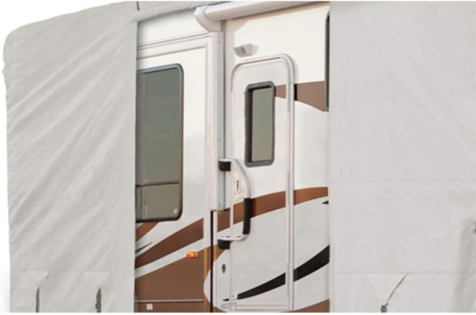 Our fabric is also finished with a specially formulated marine-grade finish that makes it a perfect choice for all intense conditions desert and mountain. These covers are highly water repellant, shedding water easily while maintaining breathability. This is an extremely important consideration in the selection of a cover because a waterproof cover can actually harm your RV. Waterproof covers can trap moisture from condensation allowing damaging mold and mildew to form. Our state-of-the-art finish repels water while allowing your coach to breathe.